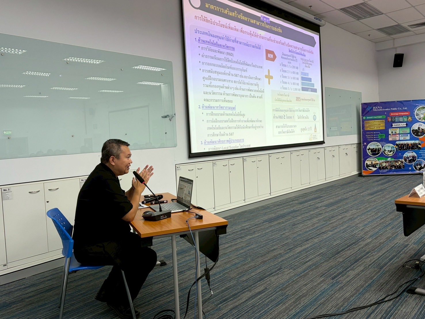เมื่อวันที่ 12 พฤศจิกายน 2568 นายสถาปนา พรหมบุญ ผู้อำนวยการศูนย์เศรษฐกิจการลงทุนภาคที่ 1 ได้รับเชิญเป็นวิทยากรในการฝึกอบรมภายในองค์กร (In-house Training) หัวข้อ “มาตรการเสริมสร้างขีดความสามารถในการแข่งขัน” ณ บริษัท ฮานา ไมโครอิเล็คโทรนิคส จำกัด (มหาชน) ภายในสวนอุตสาหกรรมเครือสหพัฒน์ จังหวัดลำพูน