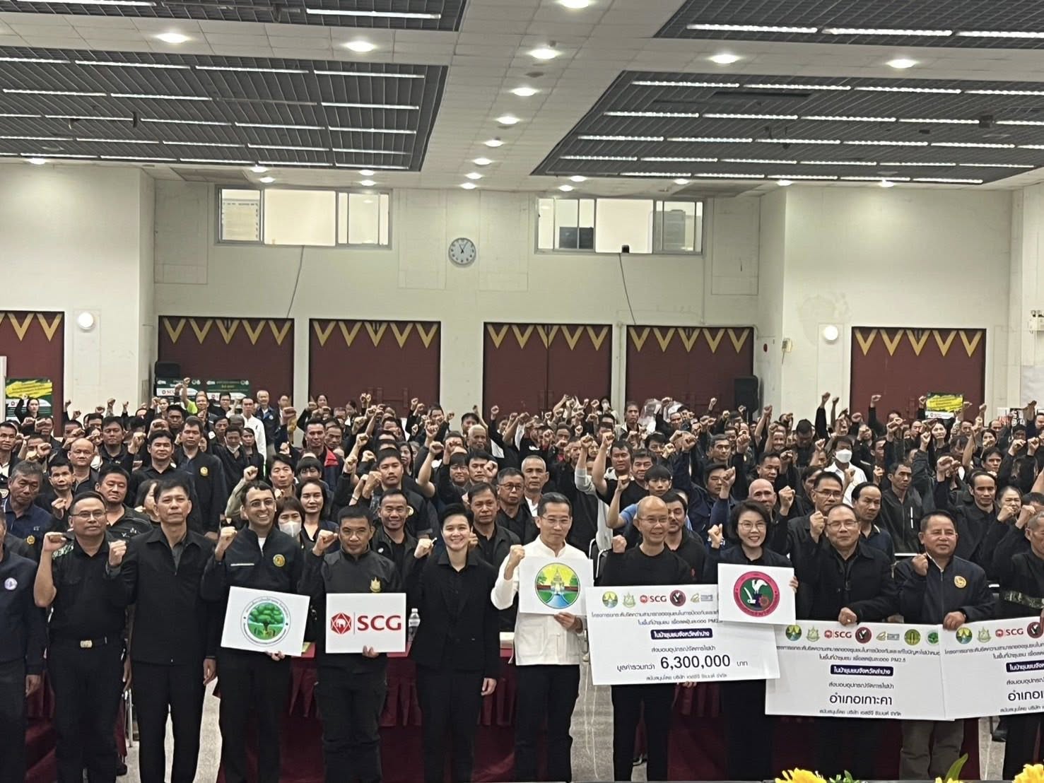 ภายในงานมีพิธีส่งมอบอุปกรณ์ดับไฟป่าจากบริษัท ปูนซีเมนต์ไทย (ลำปาง) จำกัด ให้แก่องค์การบริหารส่วนจังหวัดลำปาง เพื่อกระจายสู่เครือข่ายป่าชุมชนใน 13 อำเภอของจังหวัดลำปาง อุปกรณ์ที่ส่งมอบประกอบด้วยเครื่องเป่าลมสะพายหลัง เครื่องตัดหญ้าสะพายหลังแบบข้ออ่อน วิทยุสื่อสาร ถังฉีดน้ำ และอุปกรณ์ดูแลรักษาป่าอื่น ๆ ที่จำเป็นต่อการเสริมประสิทธิภาพการปฏิบัติงาน ขณะเดียวกัน นางสาวตวงรัตน์ โล่สุนทร นายกองค์การบริหารส่วนจังหวัดลำปาง ได้กล่าวรายงานถึงวัตถุประสงค์ของการขอรับการสนับสนุนโครงการฯ และแนวทางบูรณาการร่วมกับชุมชนเพื่อยกระดับระบบบริหารจัดการไฟป่าอย่างมีประสิทธิภาพ