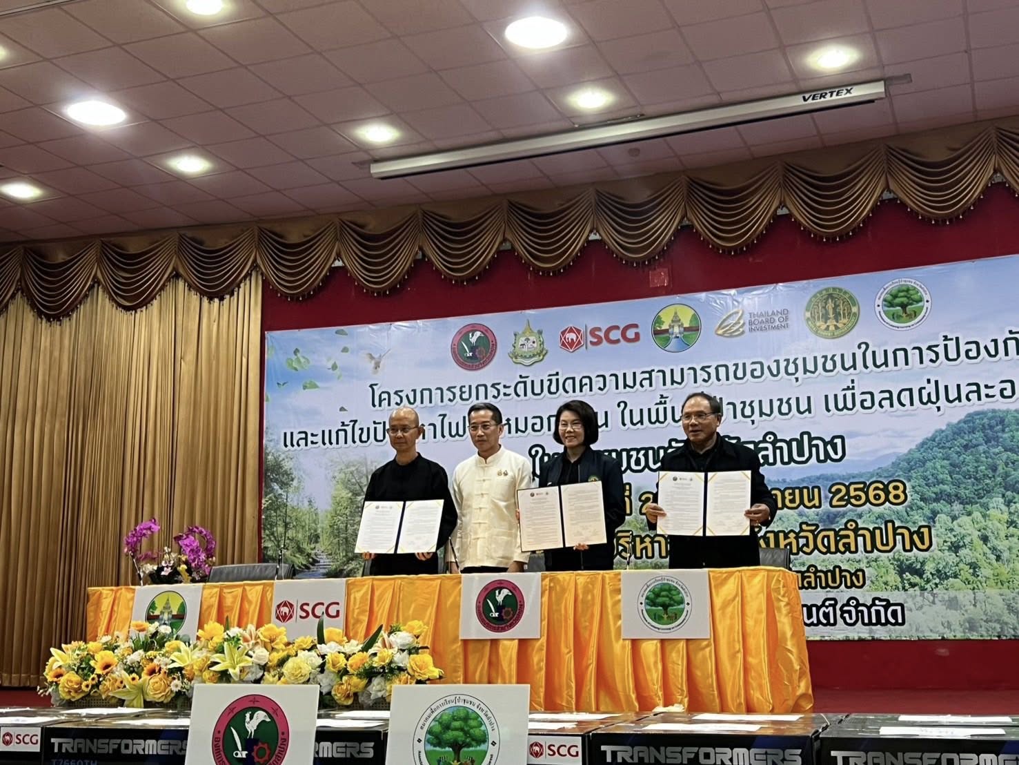 พิธีเปิดได้รับเกียรติจากนายกฤษณะ พินิจ รองผู้ว่าราชการจังหวัดลำปาง เป็นประธาน และร่วมเป็นสักขีพยานในพิธีลงนามบันทึกข้อตกลงความร่วมมือ (MOU) การขับเคลื่อนการป้องกันและแก้ไขปัญหาหมอกควันจังหวัดลำปาง ประจำปีงบประมาณ 2568 ระหว่างบริษัท ปูนซีเมนต์ไทย (ลำปาง) จำกัด องค์การบริหารส่วนจังหวัดลำปาง และเครือข่ายป่าชุมชน