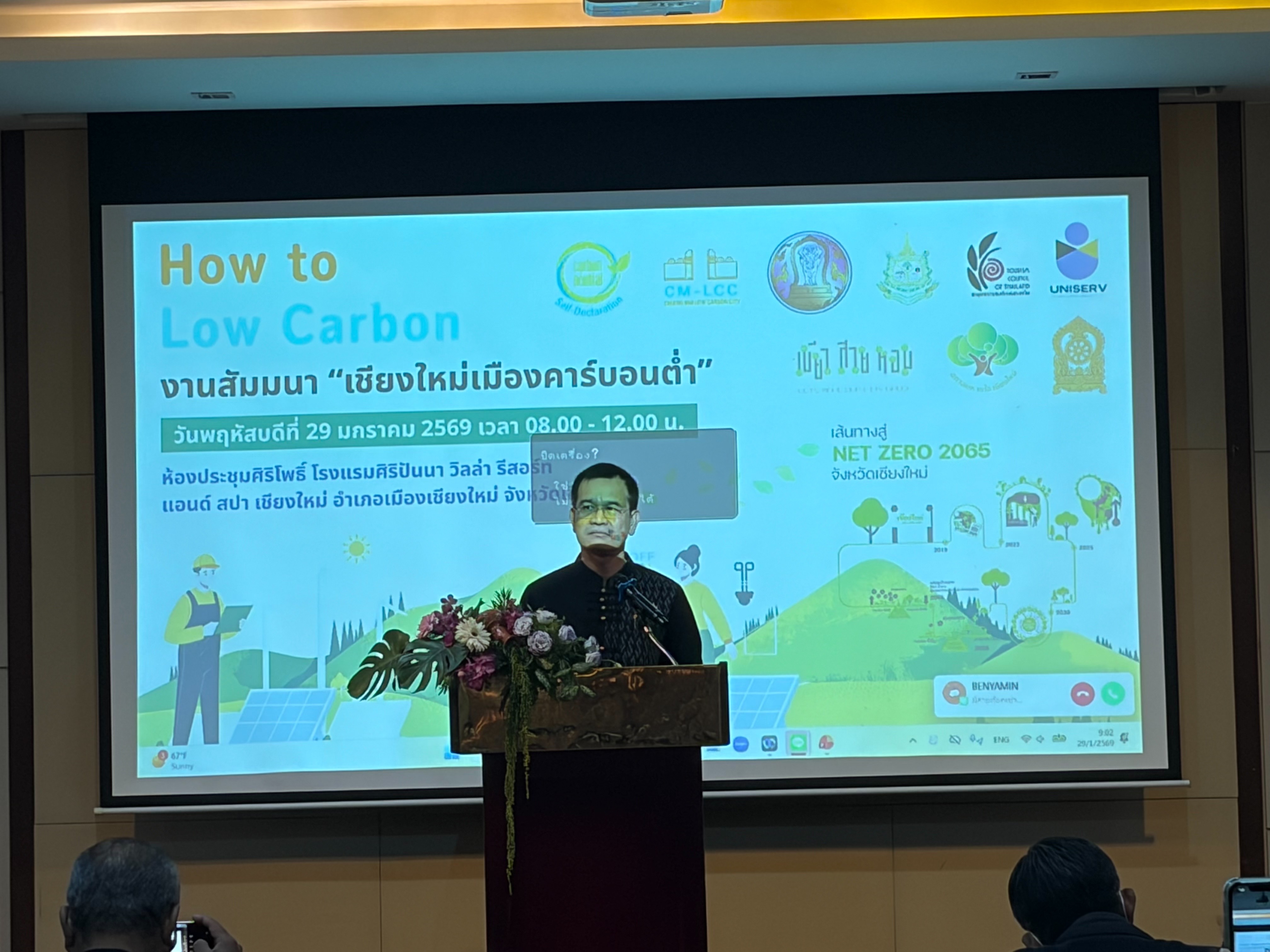 วันที่ 29 มกราคม 2569 นางสาววลัญชญ์รัตน์ วัฒนวรรณกุล และนายชัยพล กรองใจ พนักงานส่งเสริมการลงทุน ศูนย์เศรษฐกิจการลงทุนภาคที่ 1 ได้เข้าร่วมงานสัมมนา “เชียงใหม่เมืองคาร์บอนต่ำ : How to Low Carbon” ณ โรงแรมศิริปันนา วิลล่า รีสอร์ท แอนด์ สปา จังหวัดเชียงใหม่ เพื่อร่วมแลกเปลี่ยนองค์ความรู้และแนวทางการขับเคลื่อนนโยบายด้านการลดการปล่อยก๊าซเรือนกระจกในจังหวัดเชียงใหม่