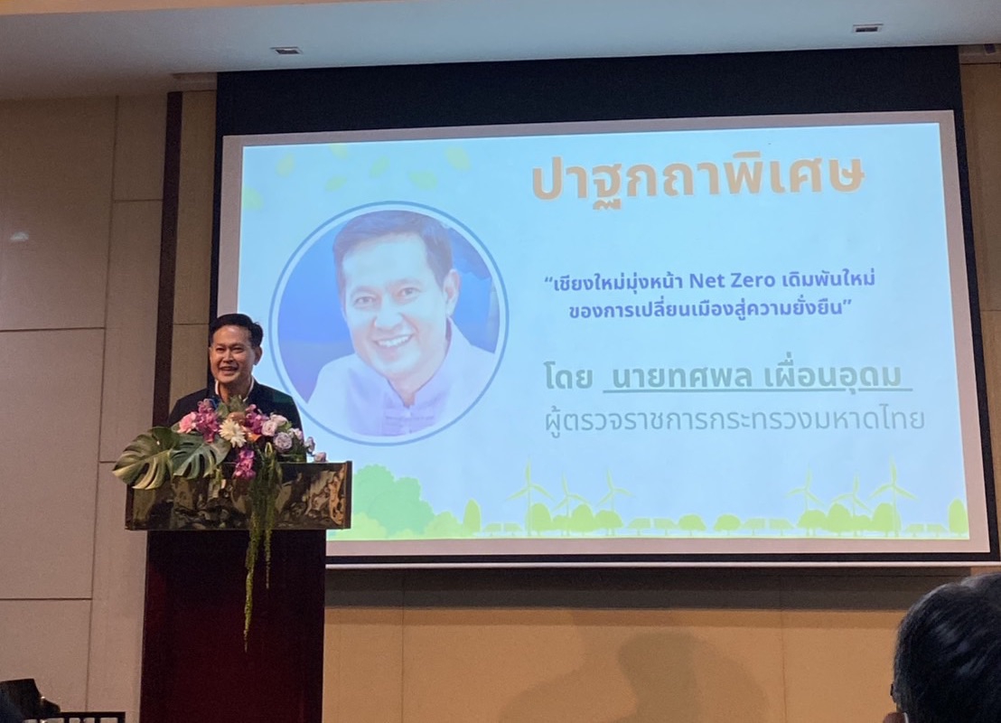 ภายในงานได้รับเกียรติจาก นายศิวกร บัวป้อง รองผู้ว่าราชการจังหวัดเชียงใหม่ เป็นประธานกล่าวเปิดงาน และมีปาฐกถาพิเศษในหัวข้อ “เชียงใหม่มุ่งหน้า Net Zero เดิมพันใหม่ของการเปลี่ยนเมืองสู่ความยั่งยืน” โดย นายทศพล เผื่อนอุดม ผู้ตรวจราชการกระทรวงมหาดไทย