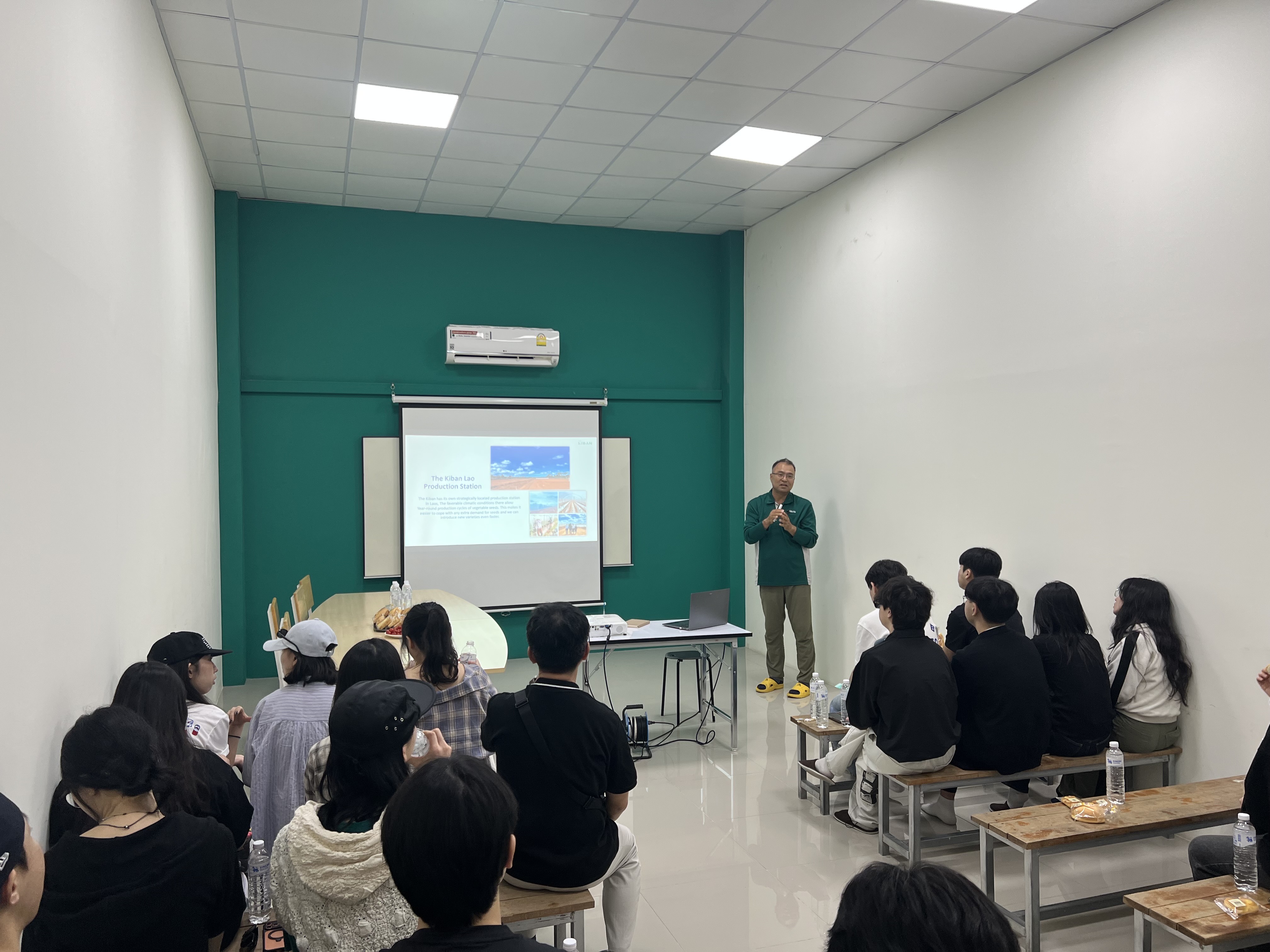 ในโอกาสนี้ Mr. Sung Goo Kang ได้บรรยายให้ความรู้เกี่ยวกับภาพรวมการดำเนินธุรกิจของบริษัท เทคโนโลยีชีวภาพด้านการปรับปรุงพันธุ์พืช รวมถึงแนวทางการพัฒนาภาคการเกษตรอย่างยั่งยืน พร้อมนำคณะนักศึกษาเยี่ยมชมแปลงเกษตรของบริษัท เพื่อให้เห็นกระบวนการดำเนินงานจริงในภาคสนาม