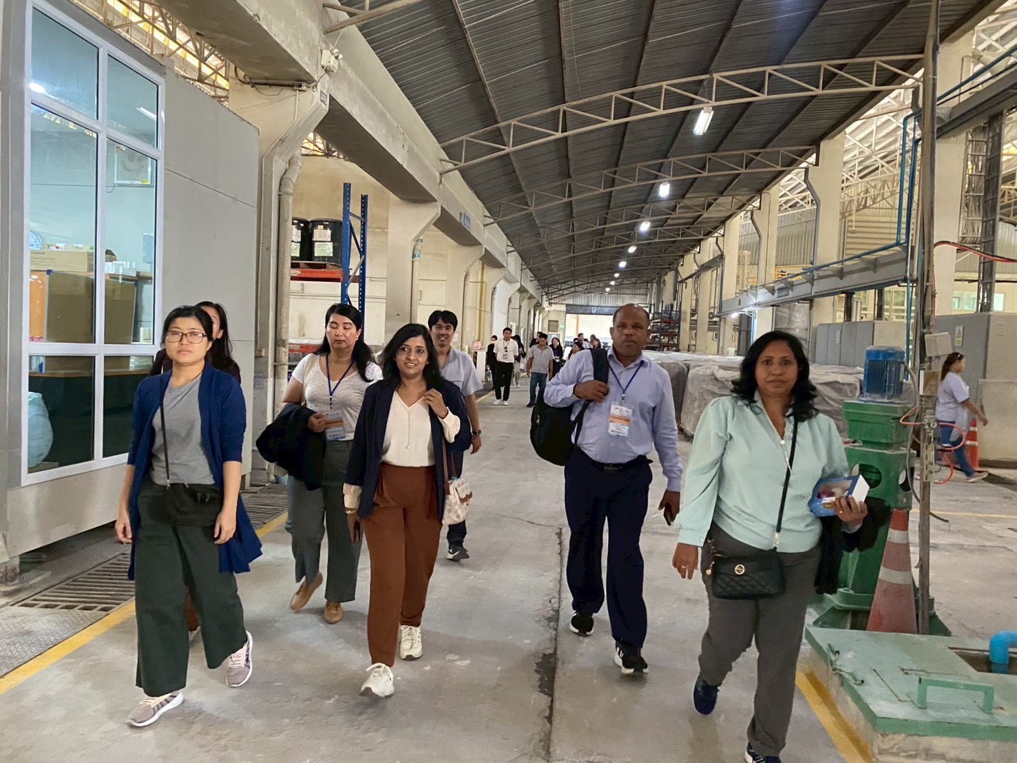 โอกาสนี้ คณะฯ ยังได้เยี่ยมชมสายการผลิตภายในโรงงาน เพื่อศึกษาการนำเทคโนโลยีระบบอัตโนมัติและหุ่นยนต์มาประยุกต์ใช้ในการเพิ่มประสิทธิภาพการผลิต ลดต้นทุน และลดผลกระทบต่อสิ่งแวดล้อม อาทิ การควบคุมกระบวนการขึ้นรูปและการเผาด้วยระบบอัตโนมัติ การใช้หุ่นยนต์แขนกลในการย้ายชิ้นงาน ลดความเสียหายจากการจับด้วยมือ