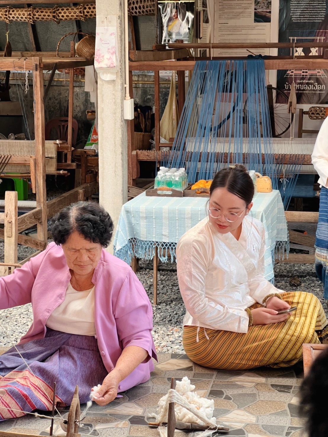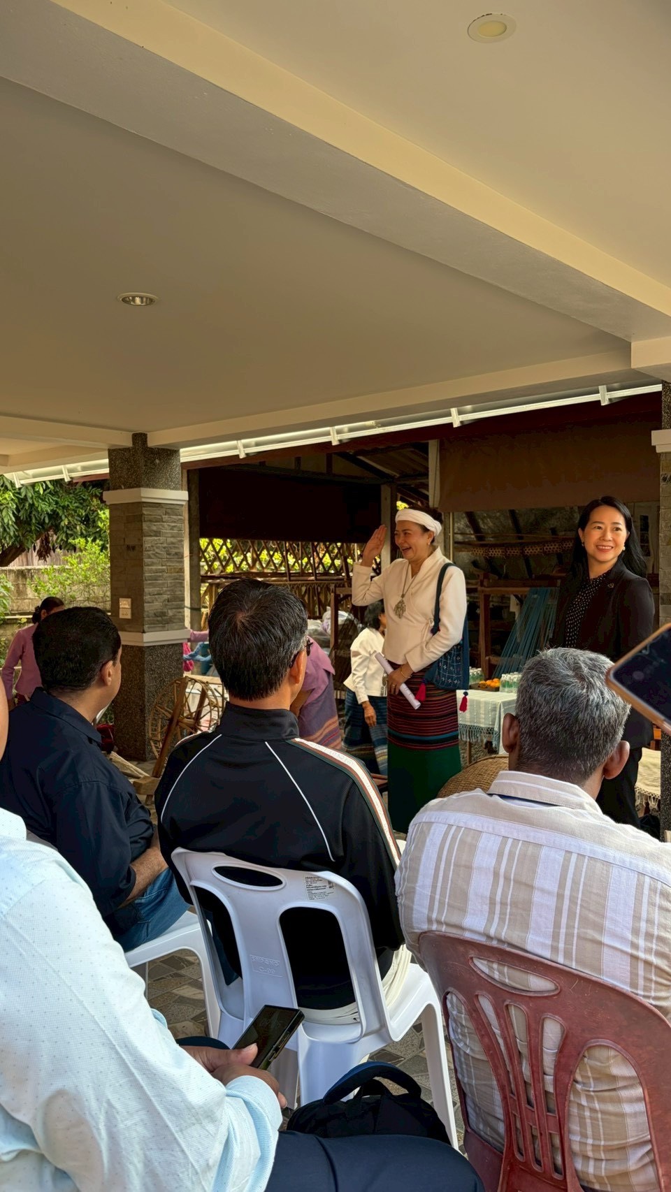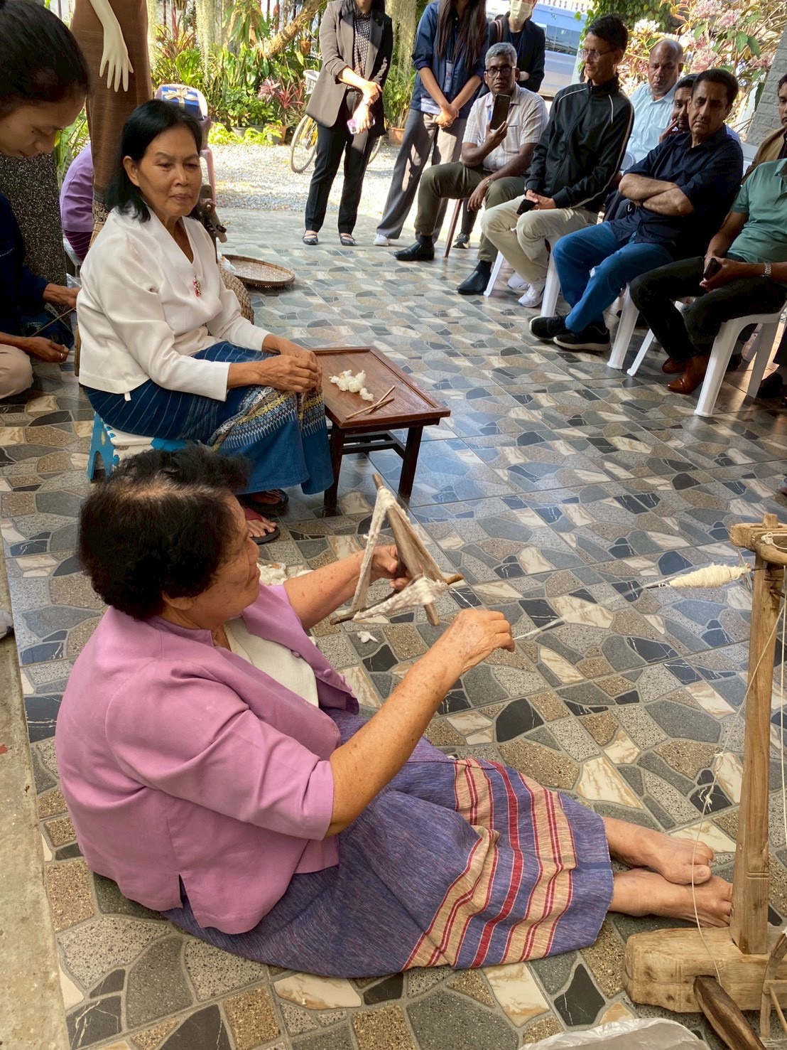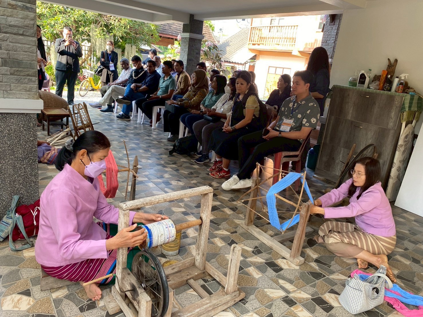 คณะฯ ได้รับฟังการบรรยายจากคุณปทิตตา พรหมสิทธิ์ (แม่หลวงอ้อ) เกี่ยวกับประวัติความเป็นมาและอัตลักษณ์ของชุมชนบ้านหนองเงือก ซึ่งมีชื่อเสียงด้านการทอผ้าฝ้ายพื้นเมืองที่สืบทอดต่อเนื่องยาวนานกว่า 100 ปี โดยเฉพาะลวดลายดั้งเดิมที่สะท้อนอิทธิพลวัฒนธรรมล้านนาและไทยองอย่างชัดเจน