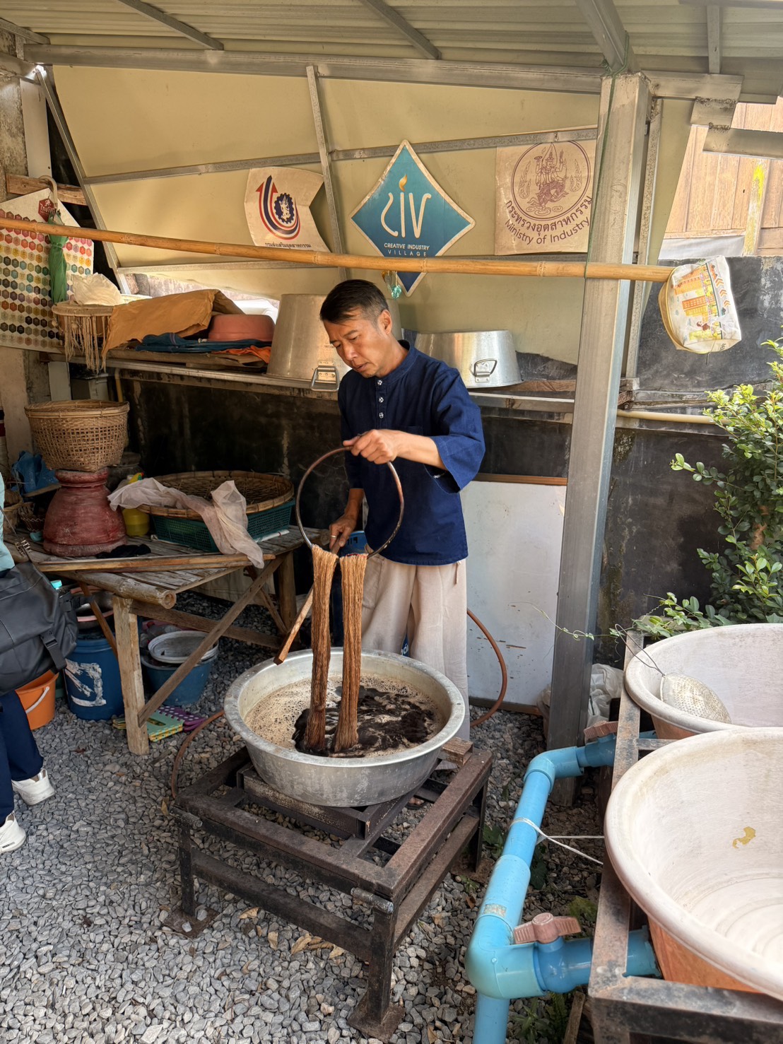 7. ย้อมสีธรรมชาติจากวัตถุดิบท้องถิ่น เช่น คราม แก่นฝาง เปลือกไม้ และใบไม้