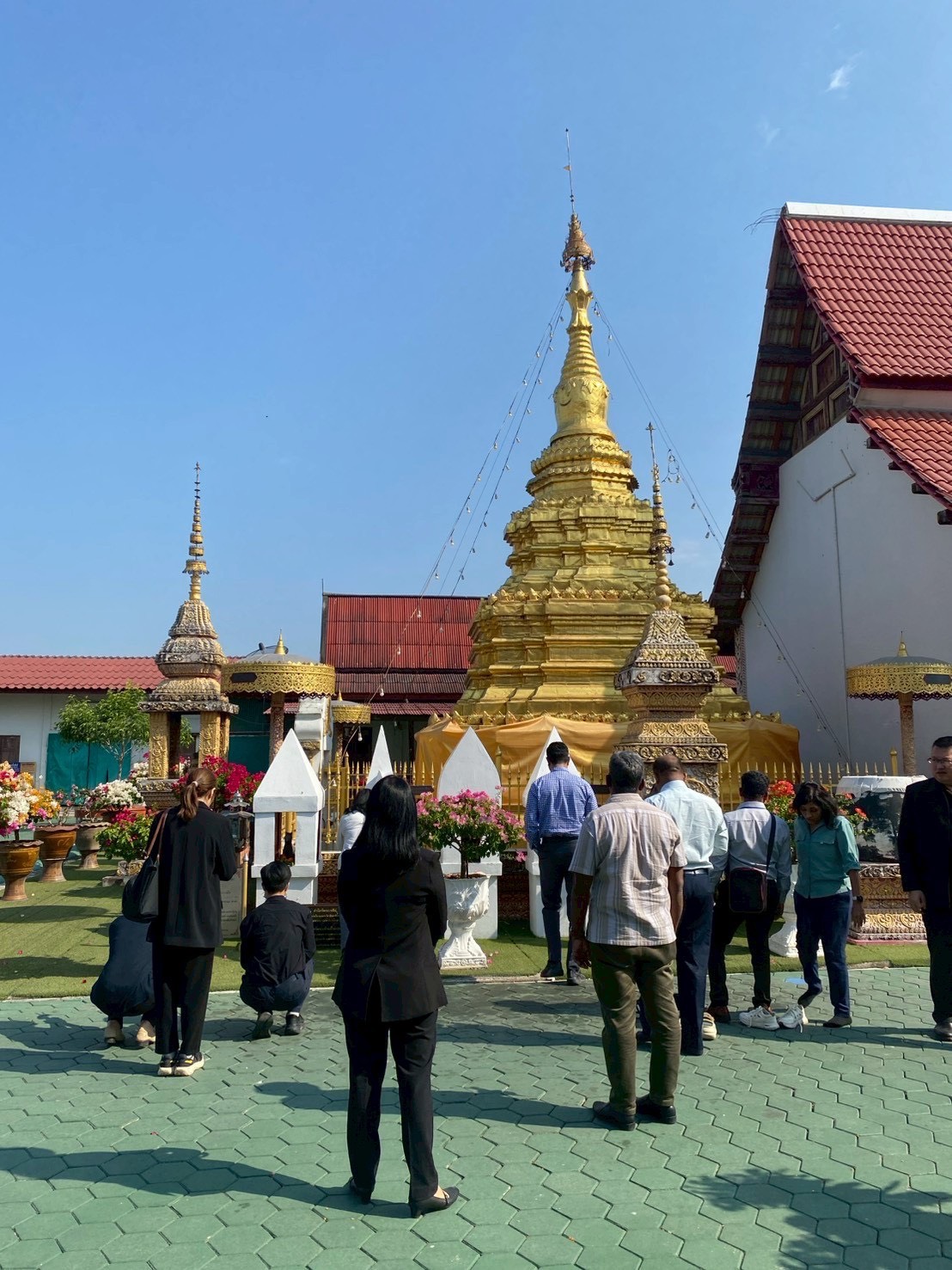 จากนั้น คณะฯ ได้เดินทางไปสักการะวัดพระธาตุหริภุญชัย วรมหาวิหาร อำเภอเมืองลำพูน ซึ่งเป็นพระอารามหลวงชั้นเอก และปูชนียสถานสำคัญที่สุดแห่งหนึ่งของภาคเหนือ
